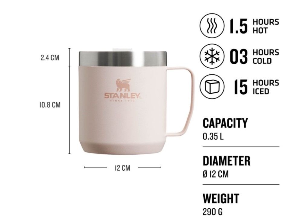 Hrnek STANLEY CAMP MUG je ideálním společníkem pro všechny milovníky přírody a pohodových chvil. Jeho robustní konstrukce z nerezové oceli 18/8 odolá náročným podmínkám venku, zatímco lehké a kompaktní provedení zajišťuje snadnou manipulaci.