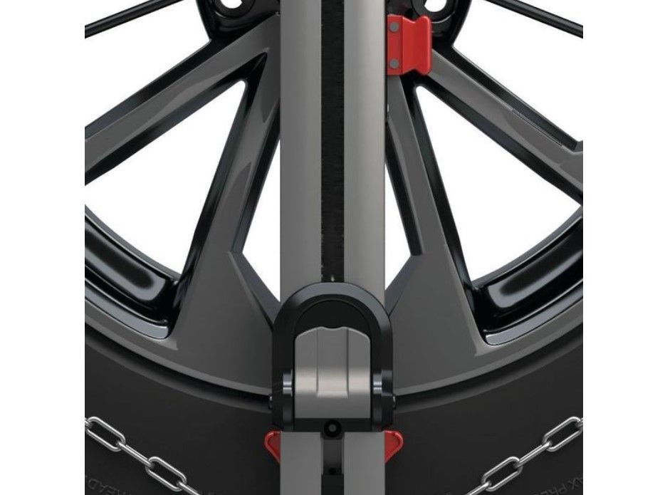Stopa řetězu je asymetrická, pro optimální záběr na sněhu. Samozřejmostí je systém Wheel-Shield, který ochrání kolo proti poškrábání při kontaktu s řetězem.