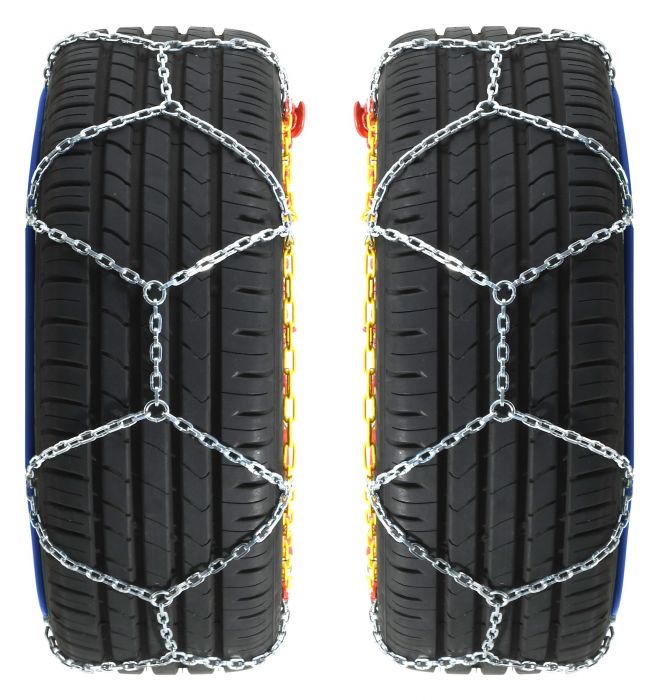 Sněhové řetězy pro osobní automobily, snadná a rychlá montáž. Vysoká účinnost díky křížové stopě. Použití do rychlosti 50 km/h. Balení 2 ks.