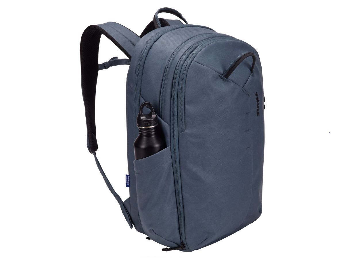 Textilie vnějšího pláště, výstelka i síťovina jsou vyrobené ze 100% recyklovaného polyesteru z recyklovaných plastových lahví a batoh Thule Aion má certifikaci buesign®. Vnější tkanina je voskovaného plátna 600D, je velmi odolná a obsahuje voděodolnou povrchovou úpravu bez toxických PFC, která odpuzuje vlhkost, špínu a skvrny.