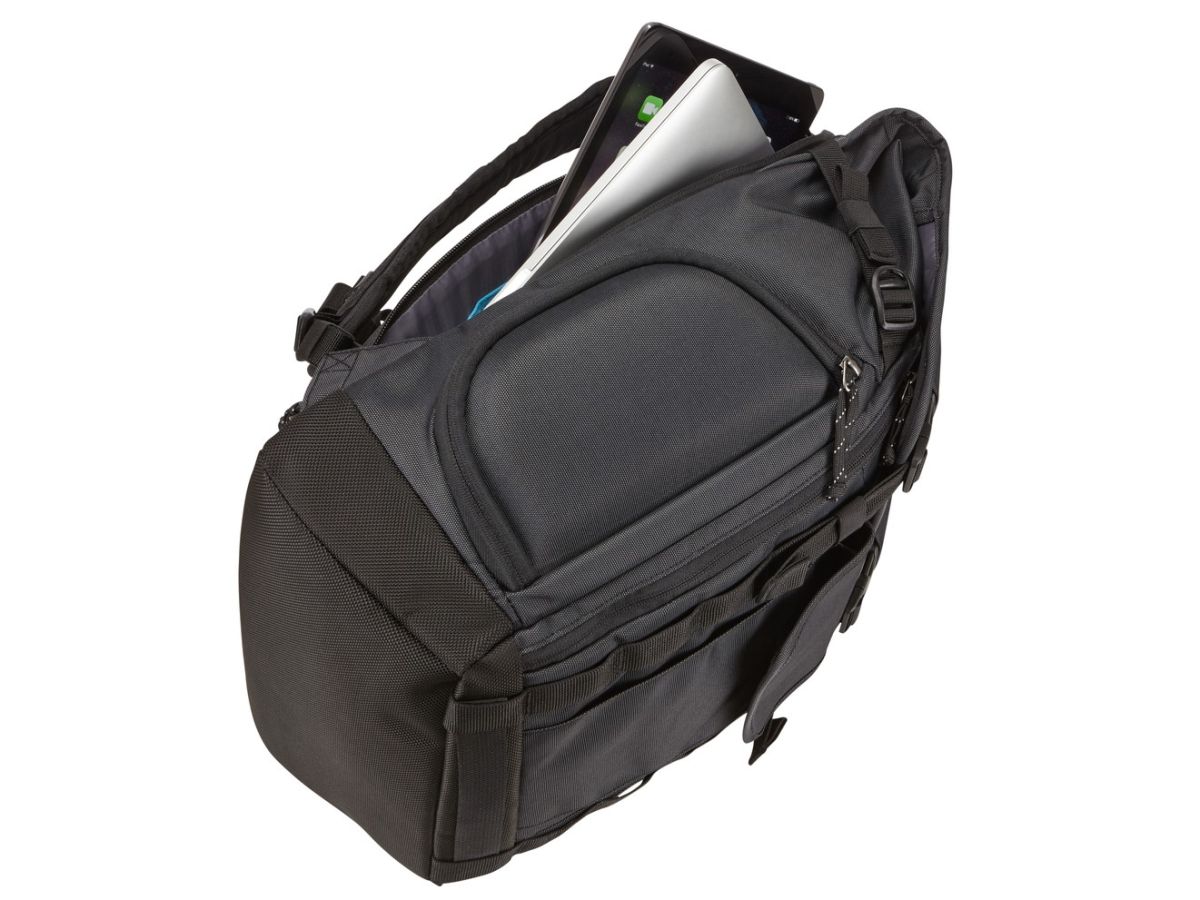 V hlavním oddílu, který má klopové uzavírání, naleznete polstrované kapsy pro bezpečné uložení 15'' MacBooku, 10,1'' tabletu a drobné elektroniky. Také je zde dostatek prostoru pro další věci. Notebook je chráněn polstrovanou konstrukcí SafeEdge.