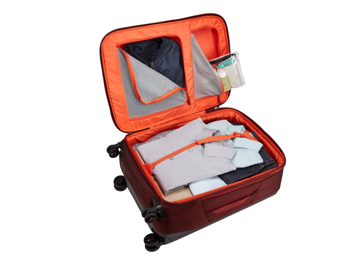 V hlavním oddílu naleznete velký úložný prostor a 2 síťované kapsy na zip. Věci uvnitř kufru jsou bezpečně upevněny pomocí stahovacích vnitřních částí.